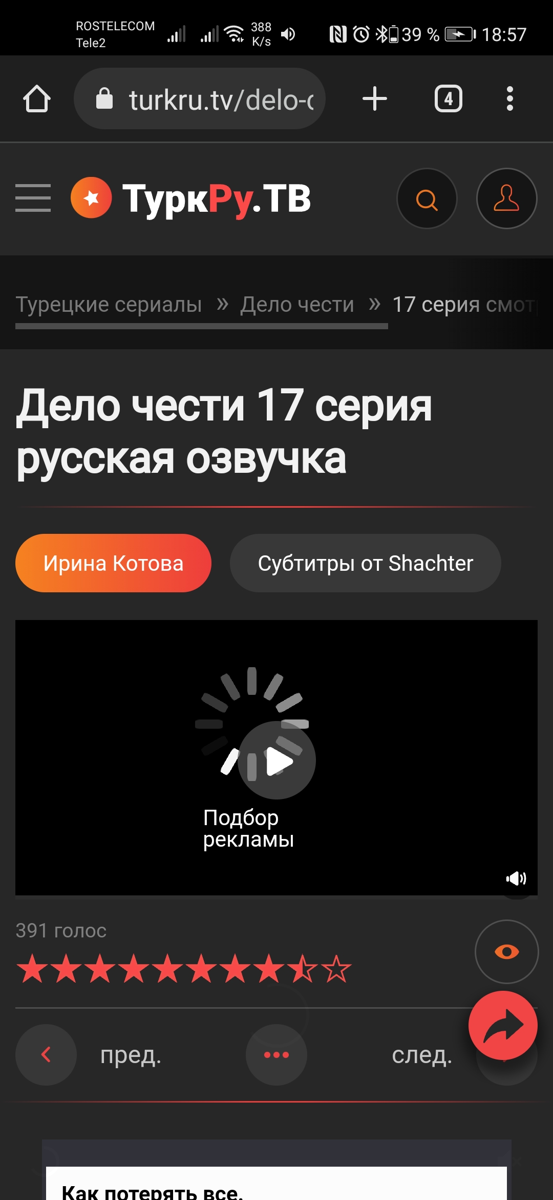 Дело чести 17 серия русская озвучка