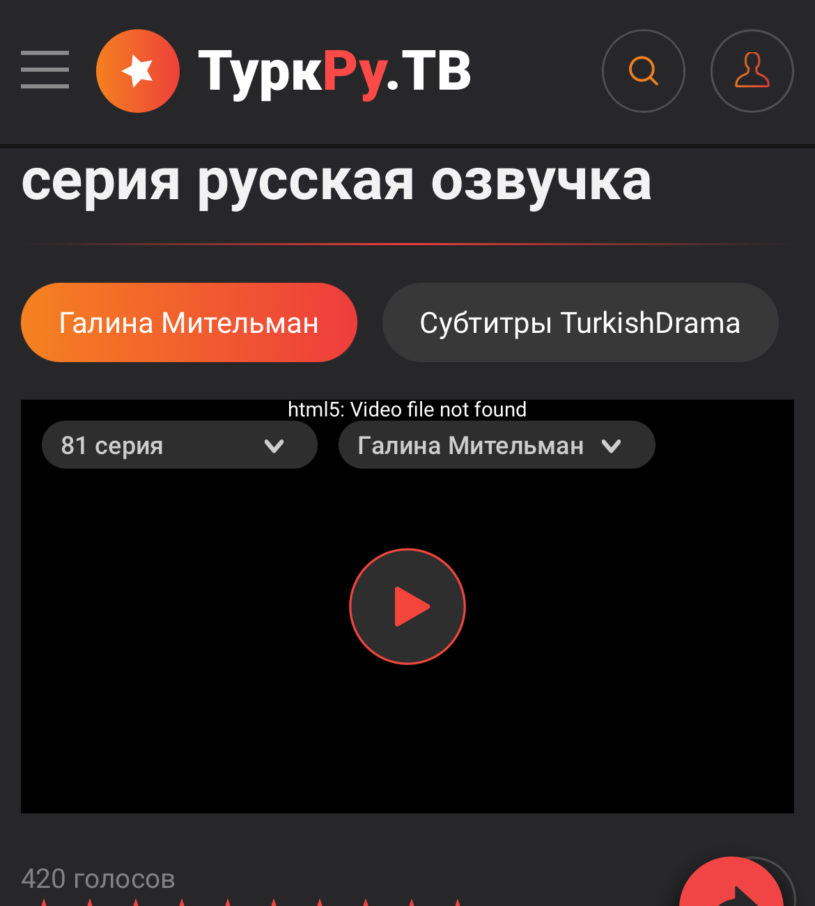 Здравствуйте, 81 серия не загружается, черный экран и пишет что видеофайл не найден, подскажите пожалуйста что делать?