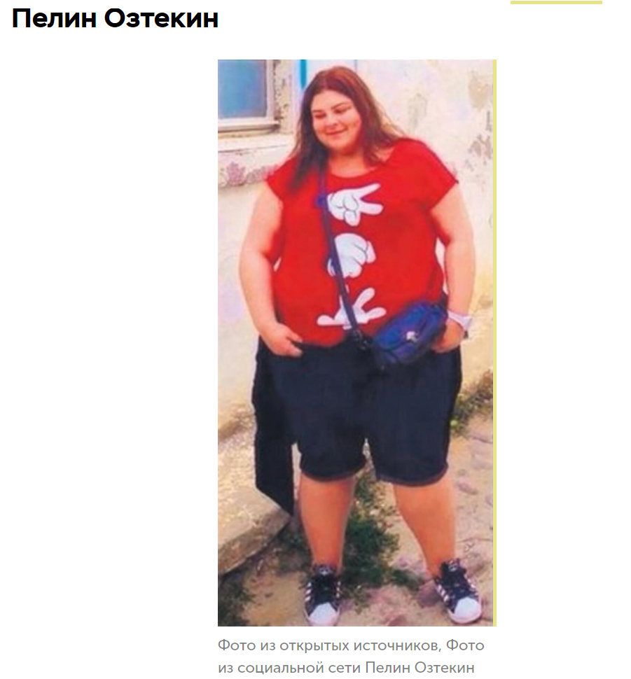 Пелин Озтекин всегда была склонна к полноте. В 2013 году она сделала операцию по уменьшению желудка, тогда её вес составлял 153 кг. За 4 года она похудела на 90 килограмм. В этом ей также помогли диета и фитнес-тренировки.